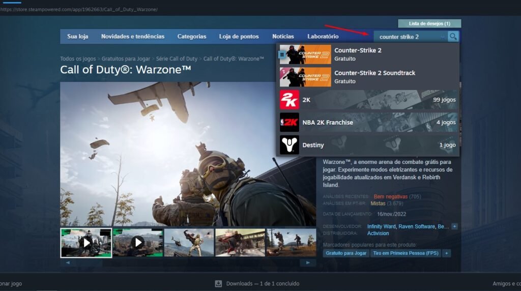 Na barra de pesquisa, digite “Counter-Strike 2” e aguarde os resultados. Eles devem incluir o jogo desejado, permitindo que você o selecione para iniciar o download ou acessar suas configurações. É importante notar que, dependendo do tempo de lançamento do jogo e da sua conta, pode haver uma ligeira demora na atualização da biblioteca.