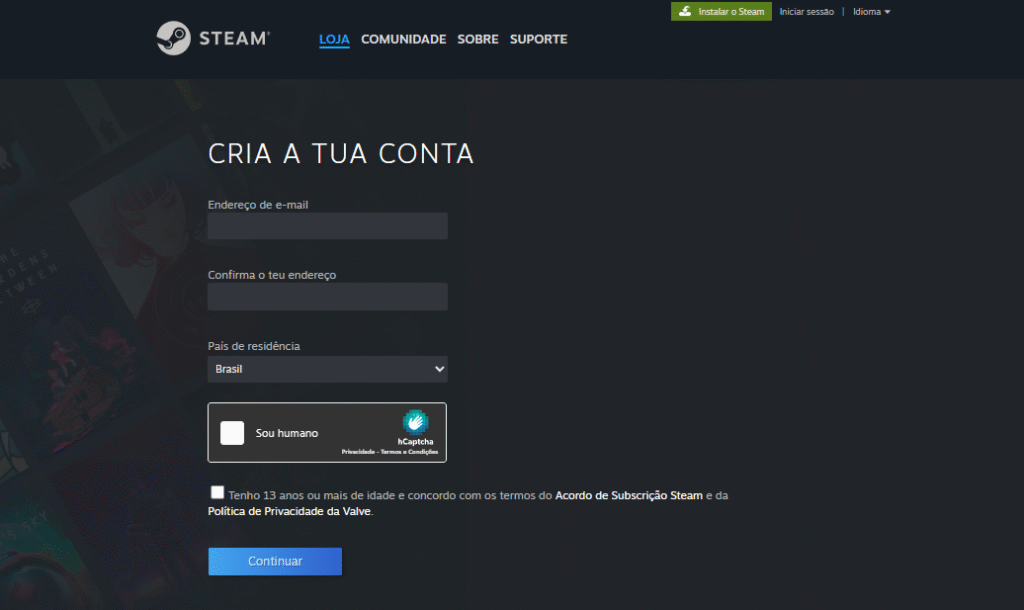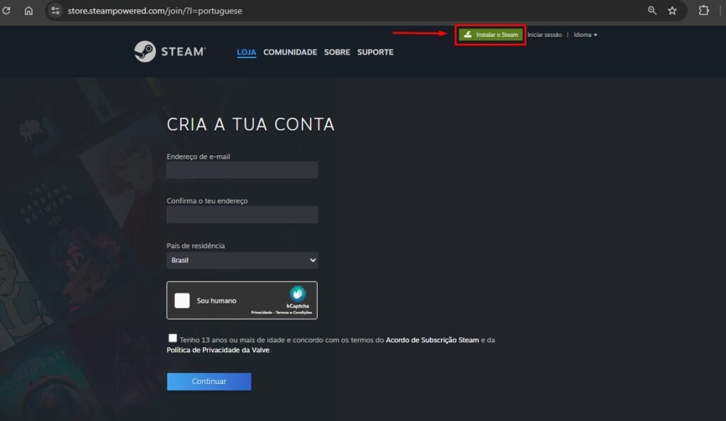 Passo 1: Criando uma Conta Steam
